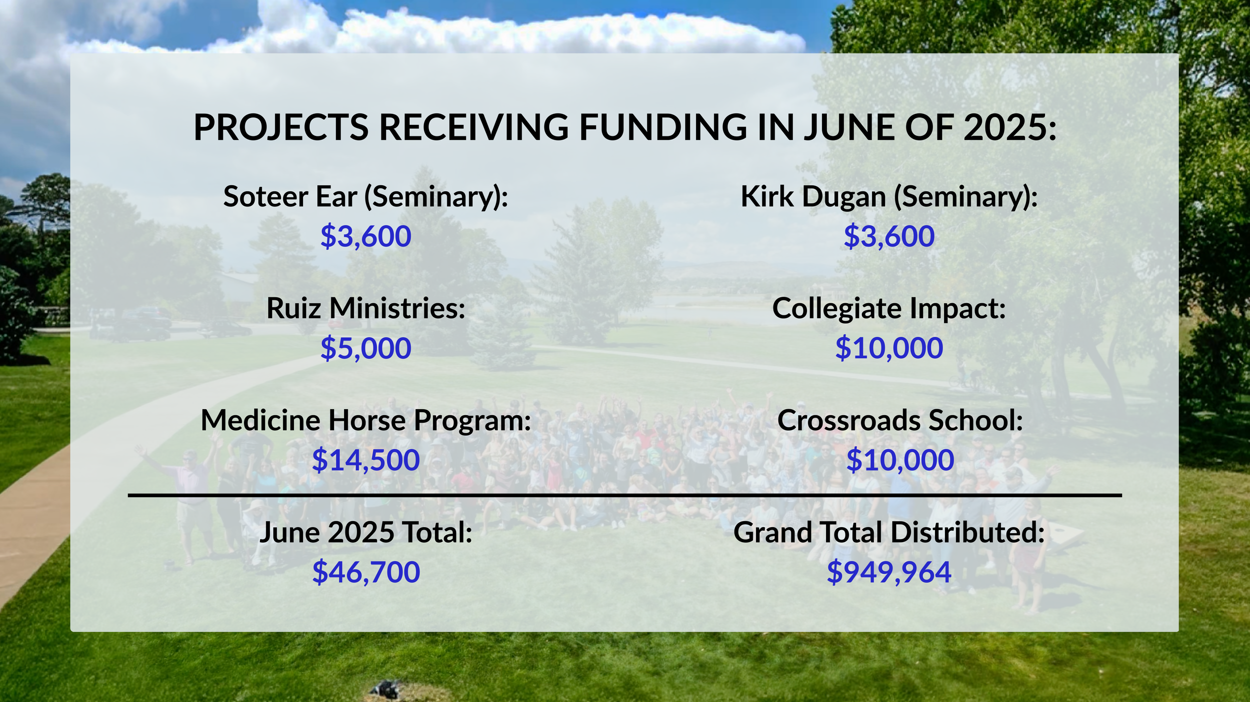 It’s an investment fund set up by the church, because of a generous gift from Hans Hansen, in which withdrawals for grants are awarded from the invested capital. It is funded by donations, which are tax deductible for donors. It is a great way to provide a gift that will keep on giving well into the future.