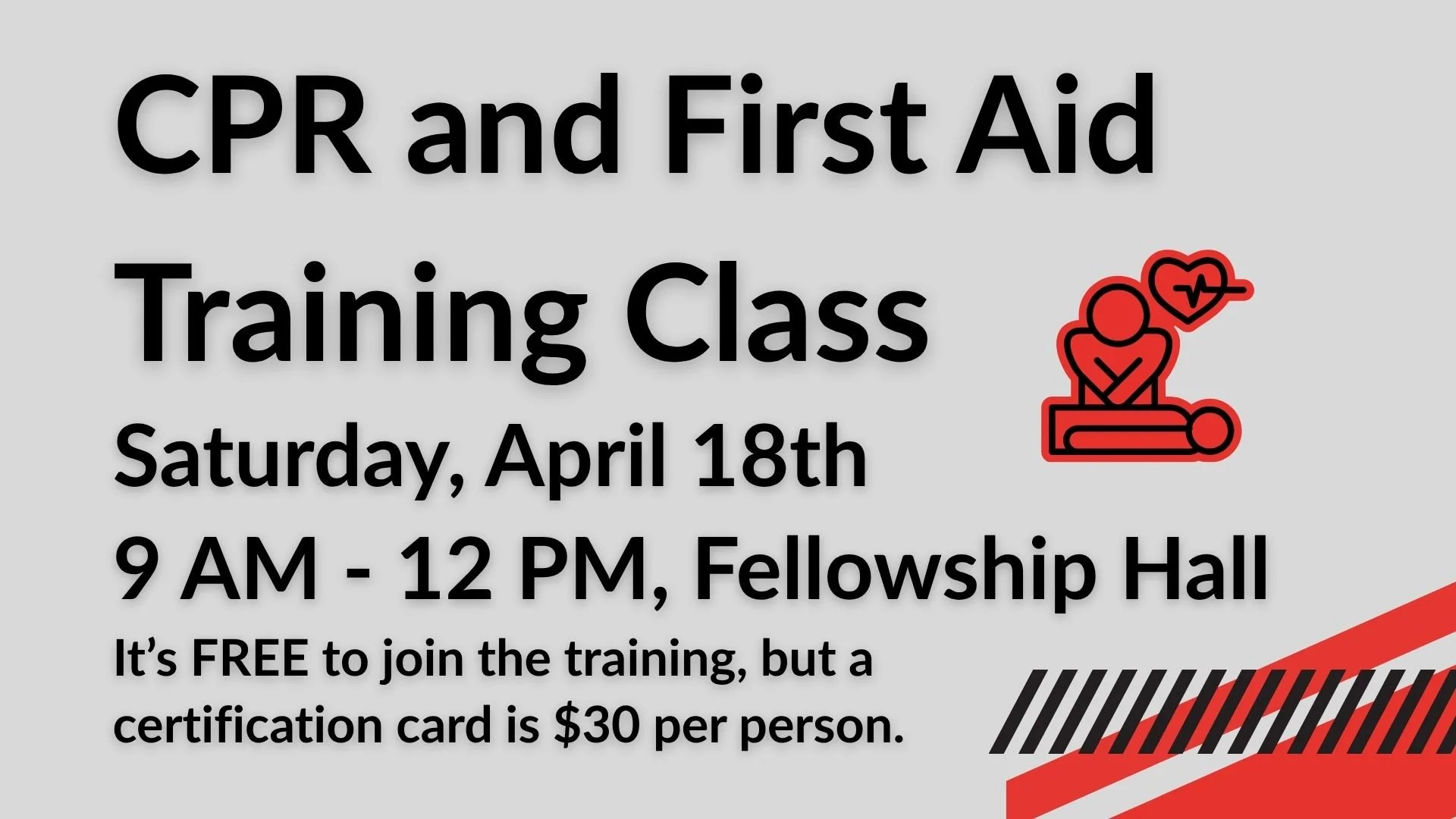 It’s FREE to join the training, but a certification card is $30 per person.